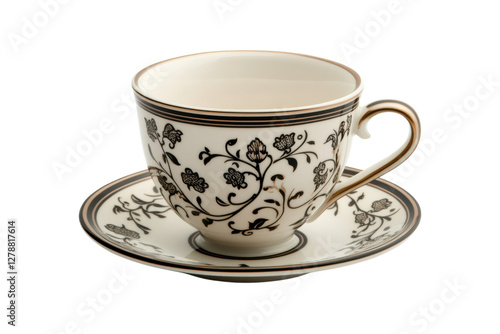 Detailed Coffee Cup with Elegant Saucer and Smooth Ceramic Finish: Isolated on Transparent Background