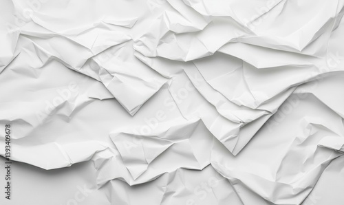 Detailed crumpled white paper texture creates an interesting abstract background, perfect for various designs.