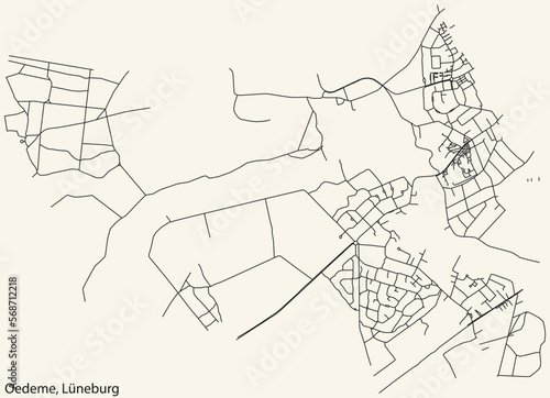 Detailed navigation black lines urban street roads map of the OEDEME DISTRICT of the German town of LÜNEBURG, Germany on vintage beige background