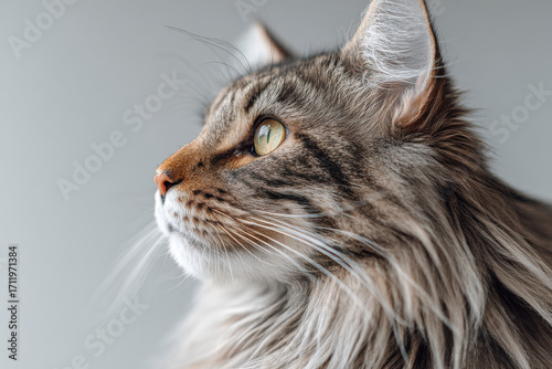 detailed portrait of elegant cat emphasizing its luxurious fur texture against clean background