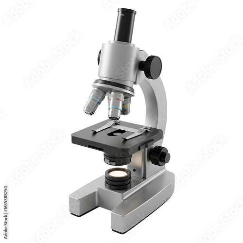 Detailed Realistic 3D Illustration of a Microscope with Transparent Background