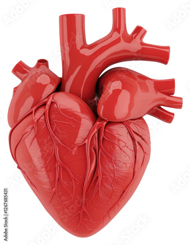 Detailed Red Human Heart Anatomy on Transparent Background Cardiology Illustration
