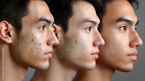 Detailed sequence of a clinical acne treatment process, focusing on significant reduction of pimples, scars, and redness on a patient's skin after 6 weeks