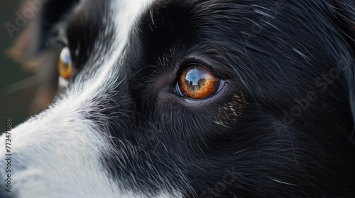 Detailed shot of a black and white dog's eye, perfect for animal lovers and pet-related designs