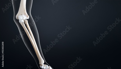 Detailed view of human forearm bones against a dark background. Medical illustration.