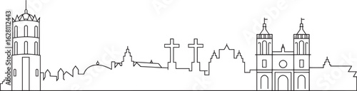 Detailed Vilnius Lithuania Skyline Silhouette Outline Vector Illustration Design Template