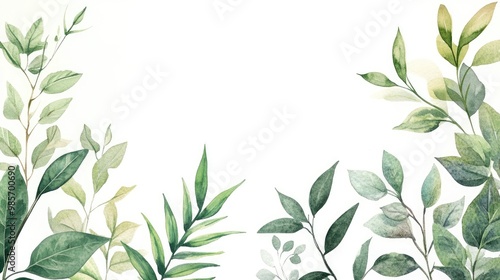 Detailed watercolor pieces depicting diverse foliage plants in thin frames, offering flexibility for design projects against an infinite dawn on white