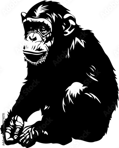 detalied black and white chimpanzee illustration