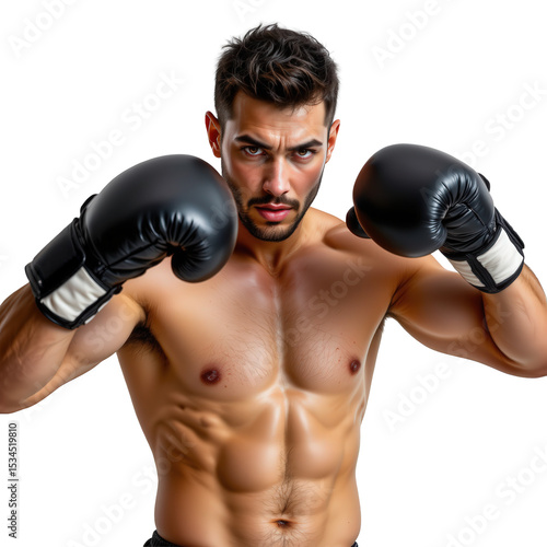 Determined Male Boxer Preparing for Match in Intense Workout Session with Focus and Strength on Display