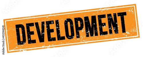 DEVELOPMENT text on black orange grungy rectangle stamp.
