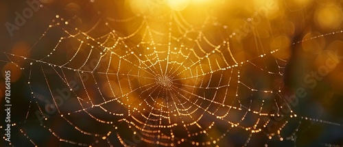 Dew drops on spider web, glistening in morning light, macro, high detail