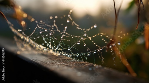 Dew-covered Spider Web Sparkling in Morning Light with Nature Background