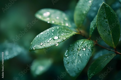 dewy green leaves under sunlight.
