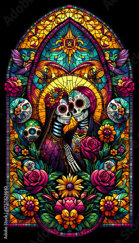 Día de Muertos Mural Mosaic Stainned Glass