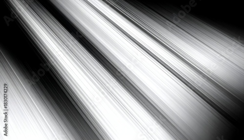 Diagonal white and gray light rays against a black background create an abstract design