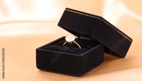 Diamond ring in a black velvet box