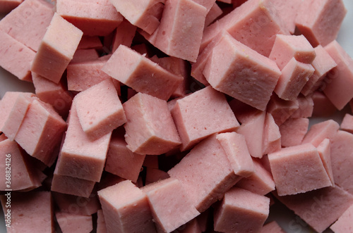 Diced salad products. Detailed recipe. Sausage. Olivier salad.