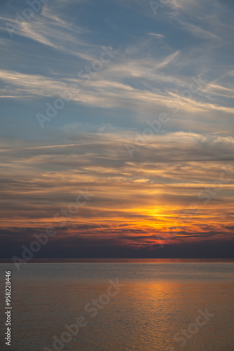Die Nordsee bei Büsum - dramatisch schöner Sonnenuntergang mit Spiegelung auf dem Wasser und dem Watt