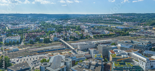 Die Stadt Ulm an der Donau in Baden-Württemberg an der Grenze zu Bayern von oben