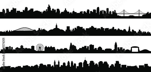 Different City Skylines Silhouette Collection