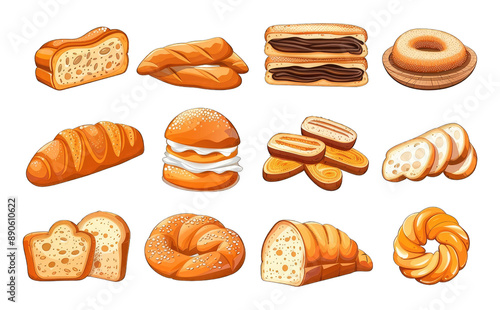 Different type Bread collection bakery food isolated on transparent background cutout PNG