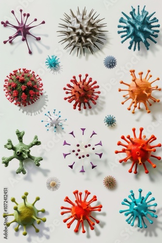 Different types of virus models isolated on white.