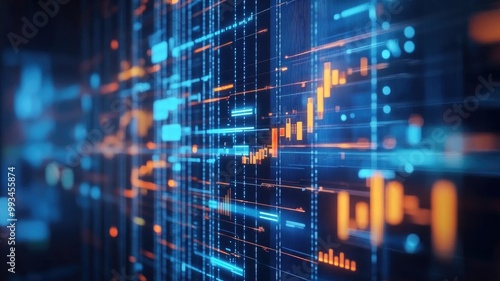Digital abstract with blue and orange lines data points representing futuristic interface