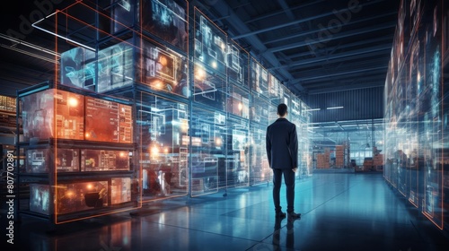 Digital and AI integration enhancing efficiency in a futuristic retail warehouse