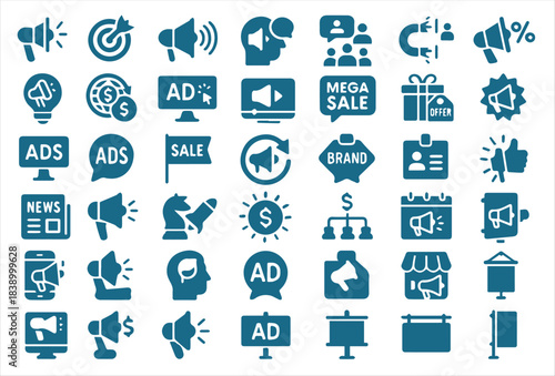 Digital and Print Advertising, Marketing, and Brand Promotion Icon Set