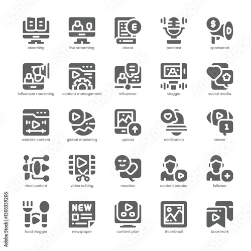 Digital Content Icon pack for your website, mobile, presentation, and logo design. Digital Content Icon solid design. Vector graphics illustration and editable stroke.