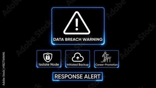 Digital data breach warning with icons for isolation backup and career promotion response alert image