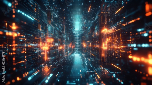 Digital data stream flowing through futuristic tunnel (1)