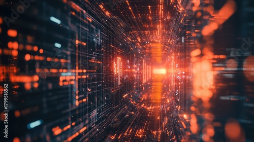 Digital data stream tunnel flowing through cyberspace network