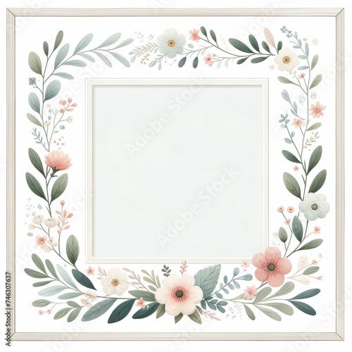 Digital frame and border with floral themes. watercolor illustration, place for text for wedding invitation, invite card, banner, poster, sticker, cover. Digital spring border.