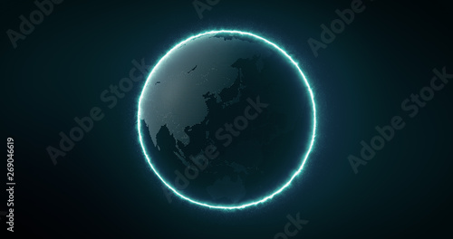 Digital Futuristic Globe with dots and circling. Digital Earth Glowing line and wire frame. 3D rendering.