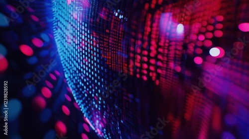 Digital globe spinning, neon lights, data flow, futuristic tech background, website banner