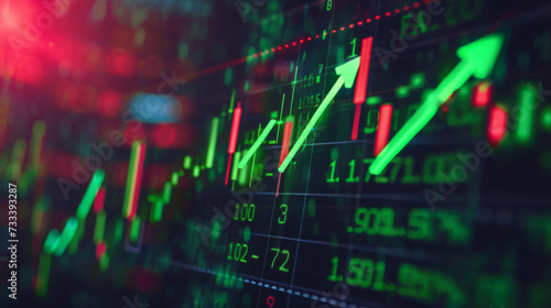 digital graphical representation of a stock market with fluctuating graphs, numerical data, and upward and downward trends, indicating financial analysis or stock trading activity.