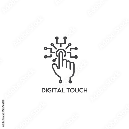 Digital hand touching tech icon, connection future dot line. Modern sign, linear pictogram, outline symbol, simple thin line vector design element template
