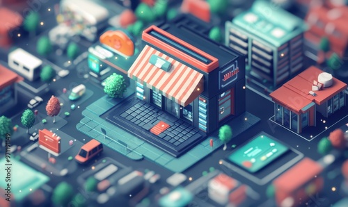 Digital marketplace with diverse e-commerce platforms, illustrating online economy