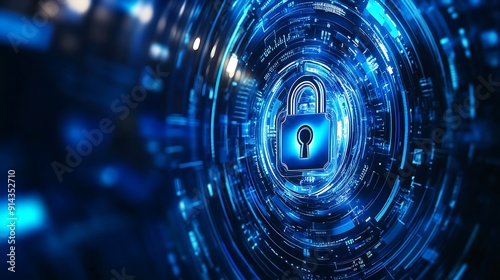 Digital Security Concept with a Blue Padlock in a Circular Pattern