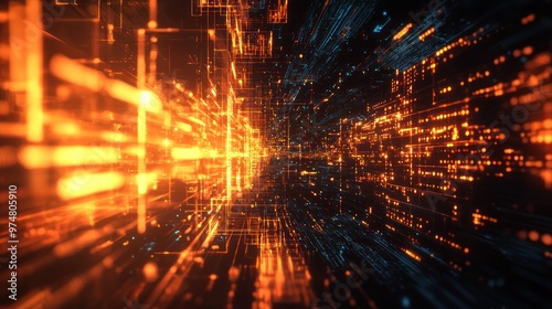 Digital technology abstract background with intricate patterns and glowing effects