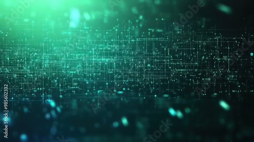 Digital technology banner green blue background concept with technology light effect, abstract tech,