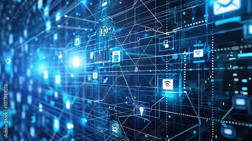 Digital Technology Future Internet Network - a futuristic and innovative visual. The white background emphasizes the connectivity and modernity of the digital network.
