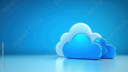 Digital transformation technology is represented by blue cloud icons smooth surface, symbolizing innovation and connectivity