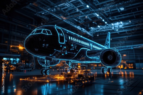 Digital twin models of aerospace components in a VR environment, showcasing industry innovation and supply chain forecasting.