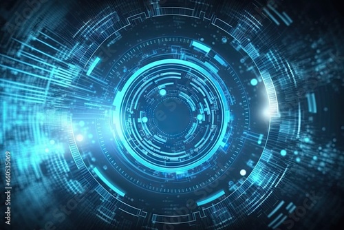 Digital universe. Exploring technology frontier. Futuristic tech network. Abstract background. Cyberspace connection. Blue tech innovation