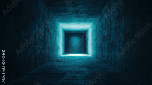 Dimly Lit Modern Concrete Tunnel with Blue Lighting and Stark Angles