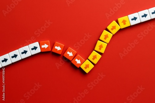 Directional Change Strategy Business Concept Colorful Arrows Red Background Upward Trend Growth Success Planning Vision Future Goals Development Innovation Progress Path Opportunity Yellow Orange