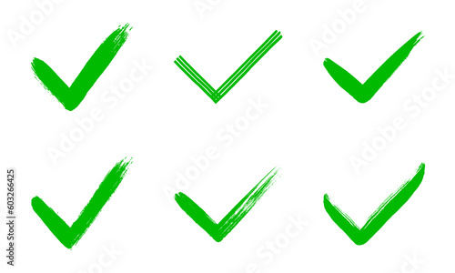 Dirty grunge hand drawn tick v with brush strokes vector illustration set isolated on white background graphic design. Check mark symbol YES button for vote in check box, web, etc.