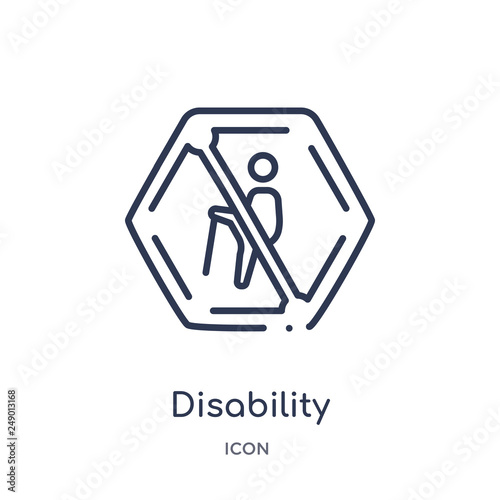 disability icon from signs outline collection. Thin line disability icon isolated on white background.